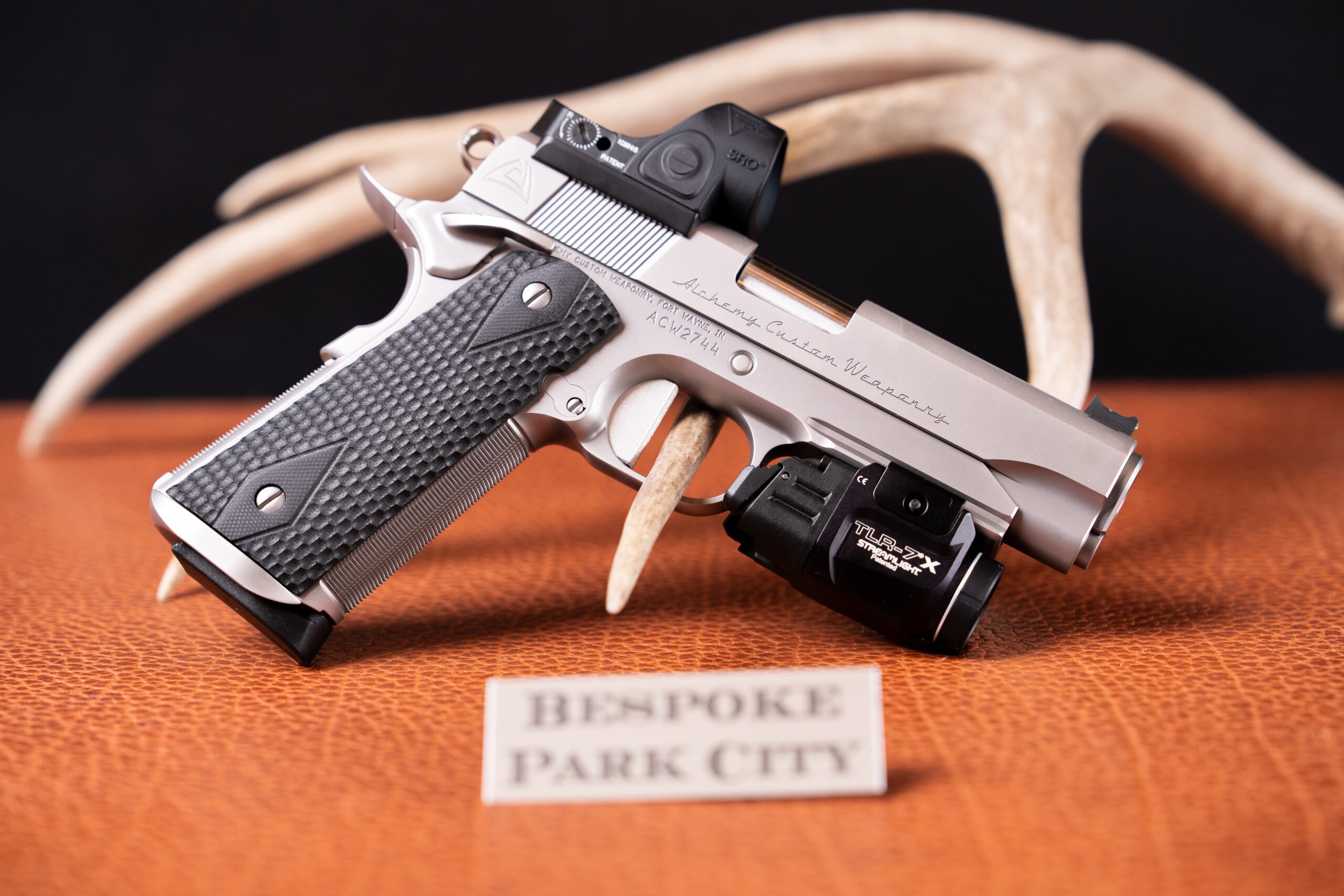 This is more than a 1911; it is a meticulously tuned masterpiece from Alchemy Custom Weaponry — an aspirational blend of old-world hand-fitting, modern performance upgrades, and understated luxury that stands proudly among the finest custom pistols available.